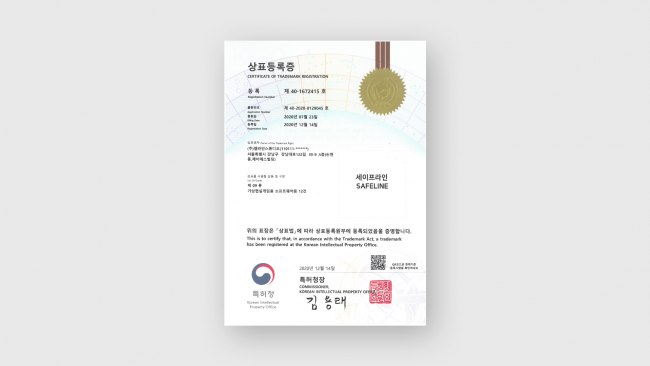 [특허청 상표법 등록] (주)엠라인스튜디오의 가상 체험형 안전 교육 시스템 세이프라인이 공식 상표등록원부에 등록되었습니다. -2020.12.14- 본 상표는 가상 체험형 안전 교육 시스템 세이프라인에 관한 것으로서, 안전 교육을 가상…